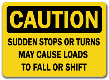 Regular price $8.99Unit price /UnavailableCaution Sign - Sudden Stops Or Turns May Cause Loads To Shift...10x14 OSHA Sign