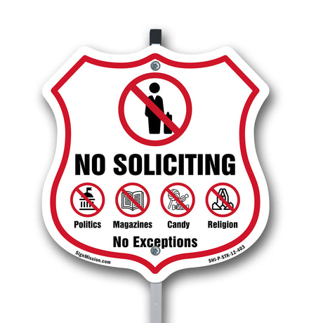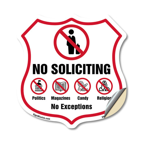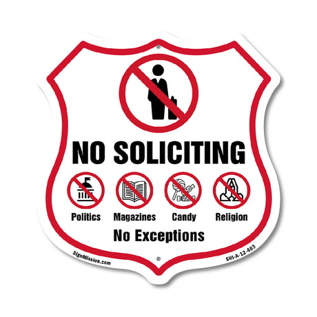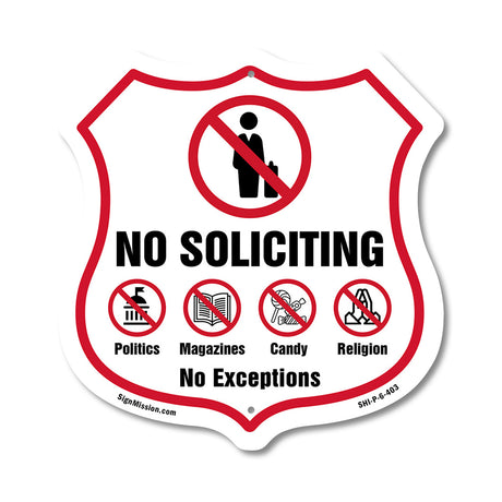 No Soliciting Shield Sign No Politics Magazines Candy Religion No Exceptions