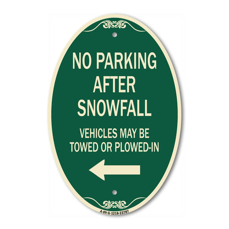 Regular price $34.99Unit price /UnavailableNo Parking After Snowfall Vehicles May Be Towed or Plowed-In with Right Arrow