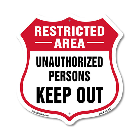 Regular price From $7.99Unit price /UnavailableRestricted Area Shield Sign Unauthorized Persons Keep Out