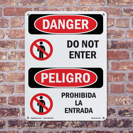 Regular price $8.99Unit price /UnavailableDanger Sign-Danger Do Not Enter Authorized Only (Bilingual) 7x10 Safety Sign