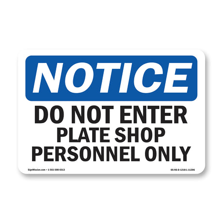 Do Not Enter Plate Shop Personnel Only