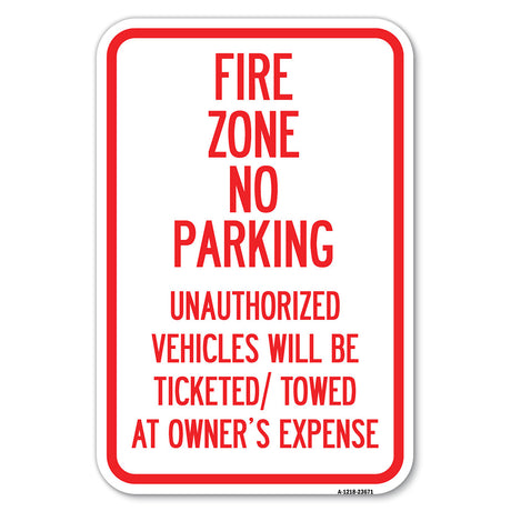 Regular price From $19.99Unit price /UnavailableNo Parking Sign Fire Zone, Unauthorized Vehicles Will Be Ticketed Towed at Owner Expense
