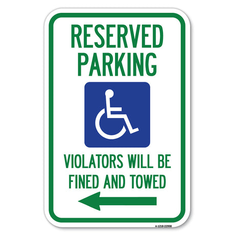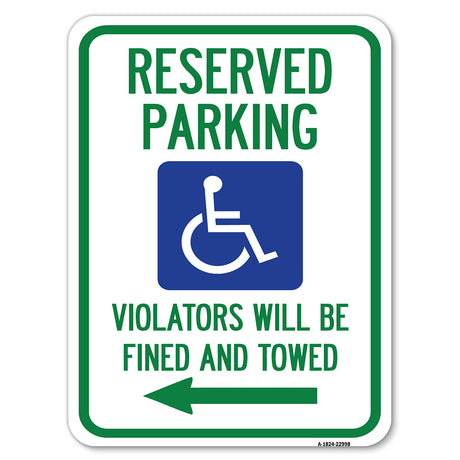 Reserved Parking Violators Will Be Fined and Towed (Left Arrow Symbol)