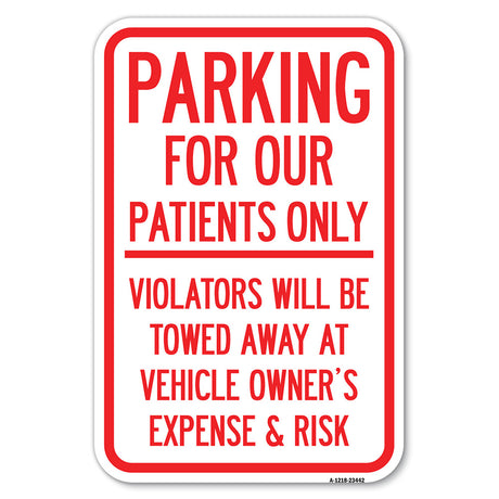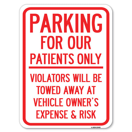 Parking for Our Patients Only - Violators Will Be Towed Away at Vehicle Owner's Expense & Risk