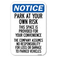 This Space Is Provided for Your Convenience - the Company Assumes No Responsibility for Loss or Damage to Parked Vehicles - 12" x 18" Heavy Gauge Aluminum Sign is backordered and will ship as soon as it is back in stock.