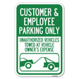 Customer and Employee Parking Only, Unauthorized Vehicles Towed at Owner Expense with Graphic