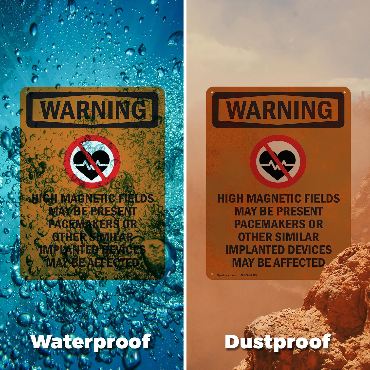 A working OSHA/ANSI safety sign that reads clean at distance and holds up outside. Header colors and signal words follow Z535 standards. High contrast. No glare.