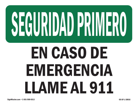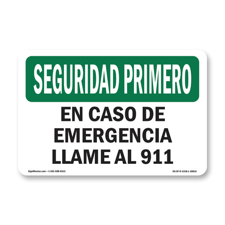 In Case Of Emergency Call 911 Spanish