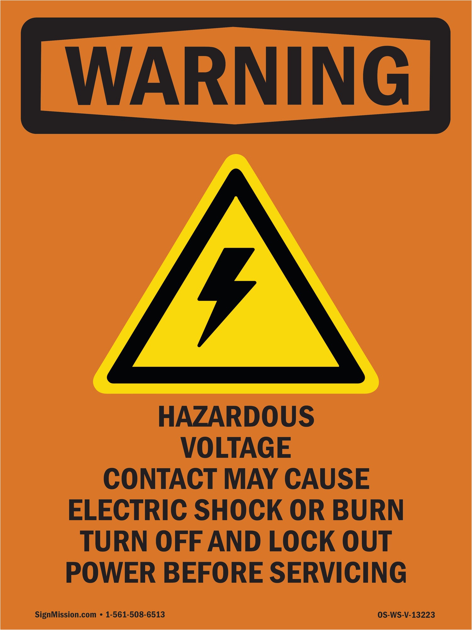 A working OSHA/ANSI safety sign that reads clean at distance and holds up outside. Header colors and signal words follow Z535 standards. High contrast. No glare.