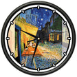 This wall clock measures 10 inches in diameter. It has a black plastic frame with a clear cover. The graphics are rich and vibrant and will last a lifetime.The clock has precision quartz movement and operates on 1 AA battery (not included).
