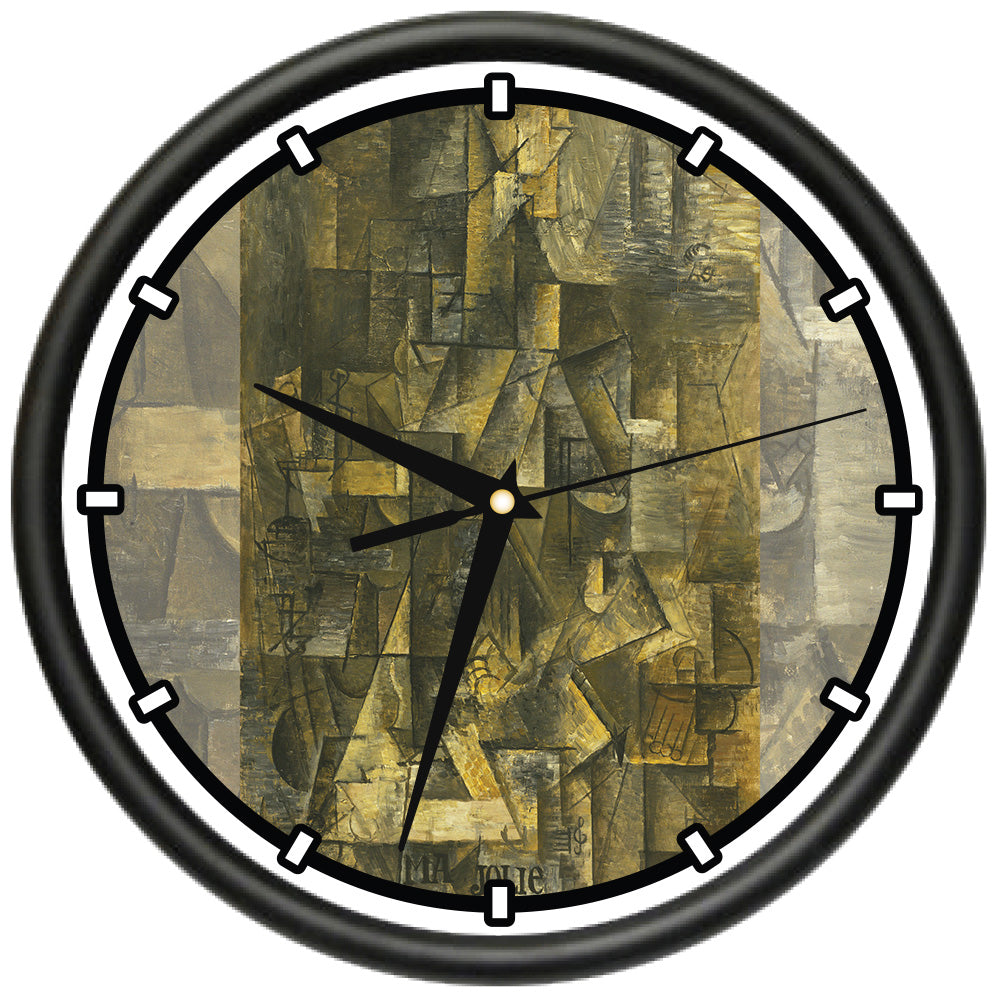 This wall clock measures 10 inches in diameter. It has a black plastic frame with a clear cover. The graphics are rich and vibrant and will last a lifetime.The clock has precision quartz movement and operates on 1 AA battery (not included).