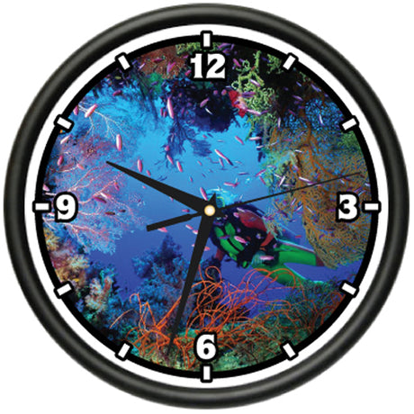 Scuba Diving Flag ~Wall Clock Diver Dive Fins Mask Tusa