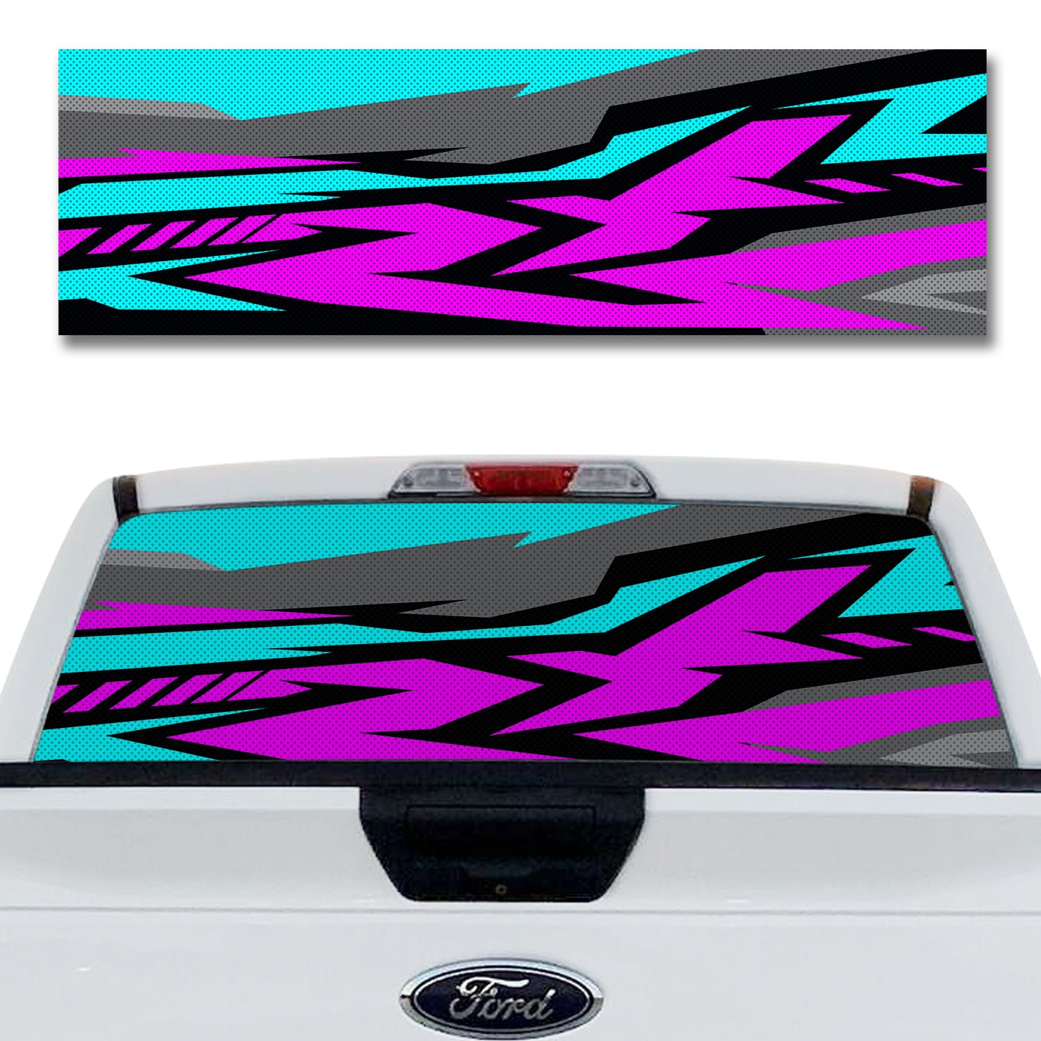 Turn your back glass into a statement that people see outside while you keep a clear view from the cab. The micro perforated film filters harsh sun