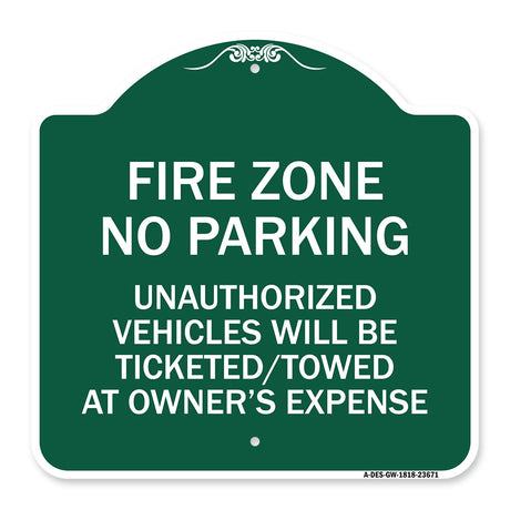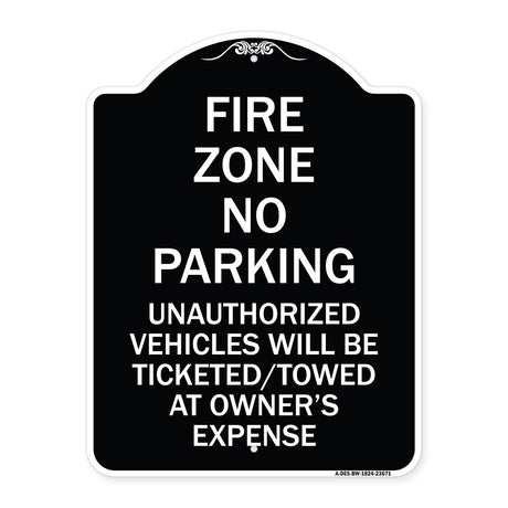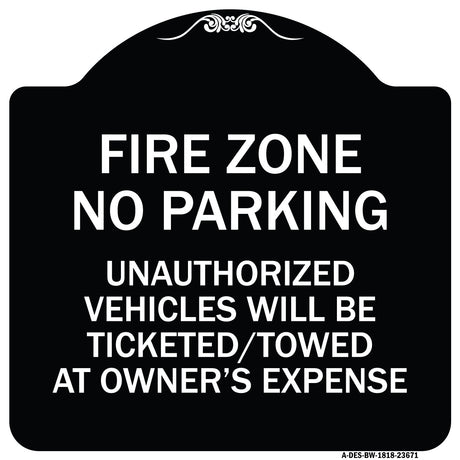 Regular price From $39.99Unit price /UnavailableNo Parking Sign Fire Zone Unauthorized Vehicles Will Be Ticketed Towed at Owner Expense