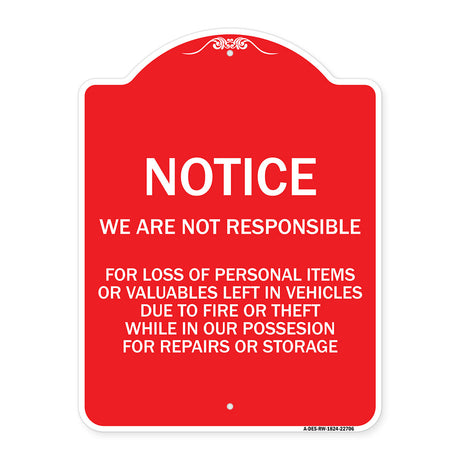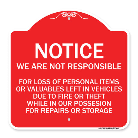 Regular price From $39.99Unit price /UnavailableNot Responsible for Theft or Damage to Vehicles Sign