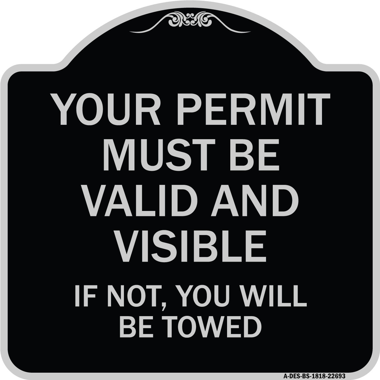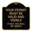 Your Permit Must Be Valid and Visible If Not You Will Be Towed - 18" x 18" Designer Aluminum Sign / Black & Gold is backordered and will ship as soon as it is back in stock.
