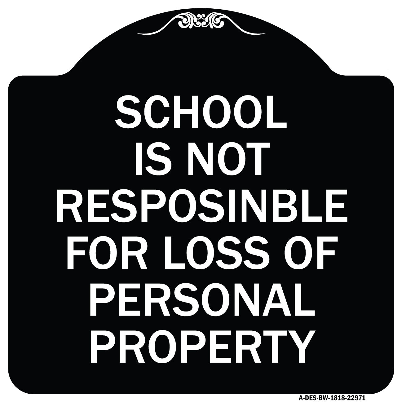 School Is Not Responsible for Loss of Personal Property Sign