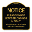 Notice Do Not Leave Belongings in Sight Management Is Not Liable for Theft or Damage - 18" x 18" Designer Aluminum Sign / Black & Gold is backordered and will ship as soon as it is back in stock.