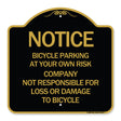 Notice - Bicycle Parking at Your Own Risk Company Not Responsible for Loss or Damage to Bicycles - 18" x 18" Designer Aluminum Sign / Black & Gold is backordered and will ship as soon as it is back in stock.