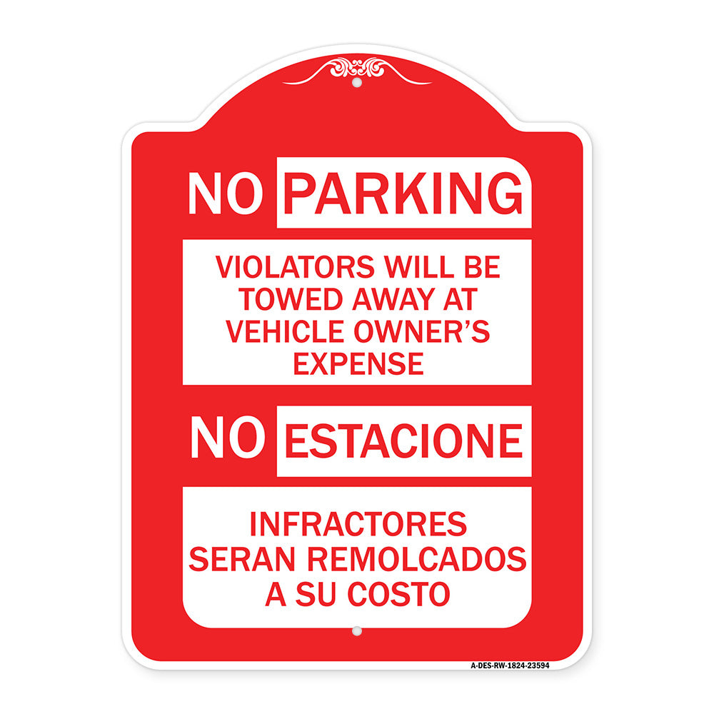 No Parking Violators Will Be Towed Away at Vehicle Owner's Expense - No Estacione Infractores Seran Remolcado a Su Costo