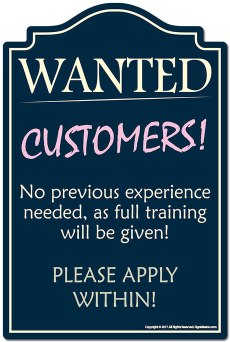Wanted Customers Please Apply Within Novelty Sign