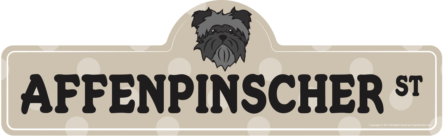 Get a fun Affenpinscher Street sign for your home or office and show off your love for your favorite breed.