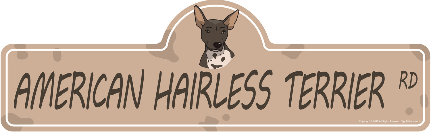 Get a fun American Hairless Terrier Street sign for your home or office and show off your love for your favorite breed.