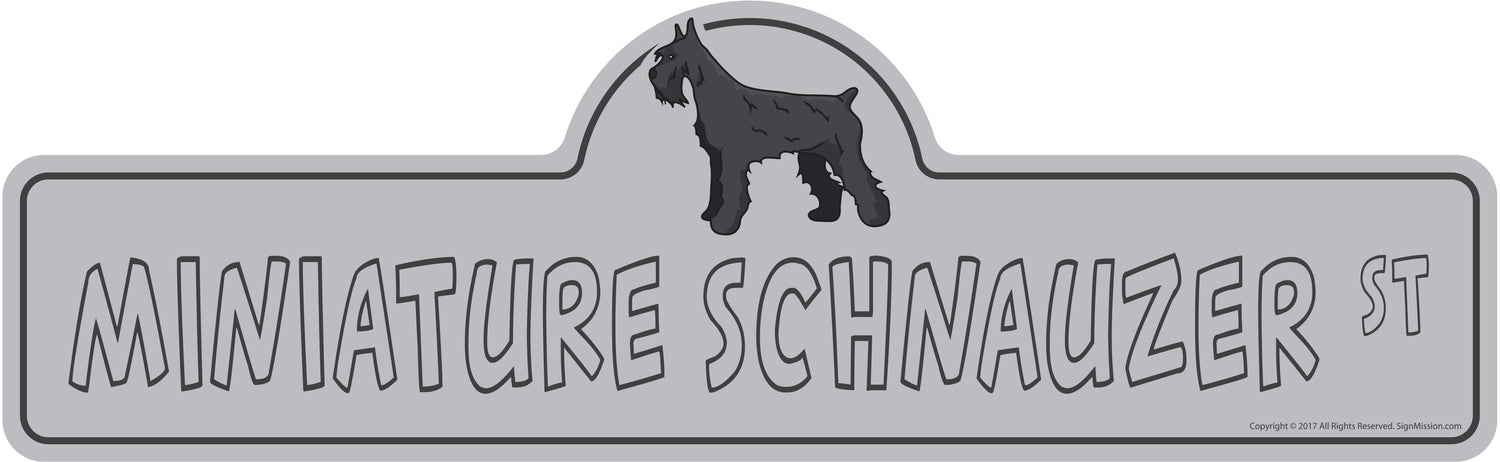 Get a fun Miniature Schnauzer Street sign for your home or office and show off your love for your favorite breed.