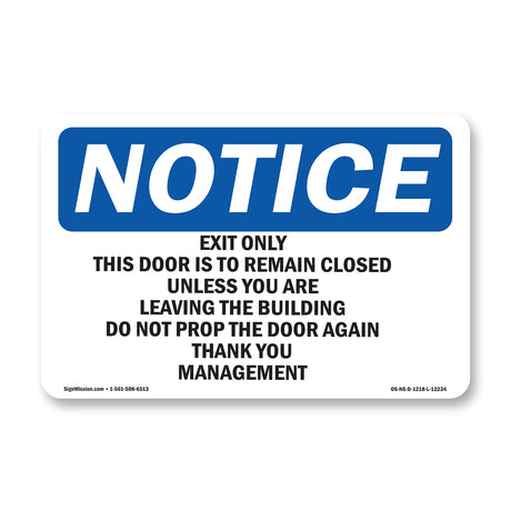 Exit Only This Door Is To Remain Closed