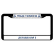 Proudly Served On USS FABIUS ARVA 5 License Plate Frame