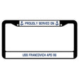 Proudly Served On USS FRANCOVICH APD 116 License Plate Frame