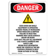 A working OSHA/ANSI safety sign that reads clean at distance and holds up outside. Header colors and signal words follow Z535 standards. High contrast. No glare.