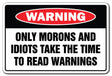 Click ‘Add to Cart’ to get your Only Morons And Idiots Read sign today and enjoy a good laugh each time you pass by!