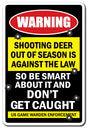 SHOOTING DEER OUT OF SEASON IS AGAINST THE LAW DON'T GET CAUGHT Warning Sign