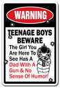 Click ‘Add to Cart’ to get your Teenage Boys Beware Dad Has sign today and enjoy a good laugh each time you pass by!