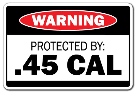 PROTECTED BY .45 CAL Warning Sign