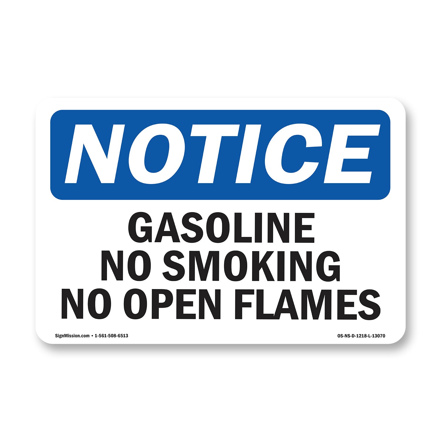 Gasoline No Smoking No Open Flames Sign