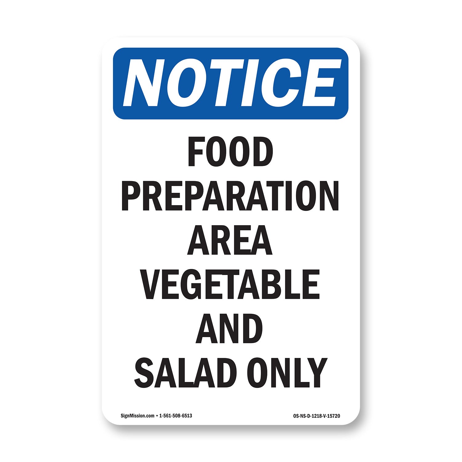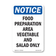 NOTICE Food Preparation Area Vegetable Salad Only
