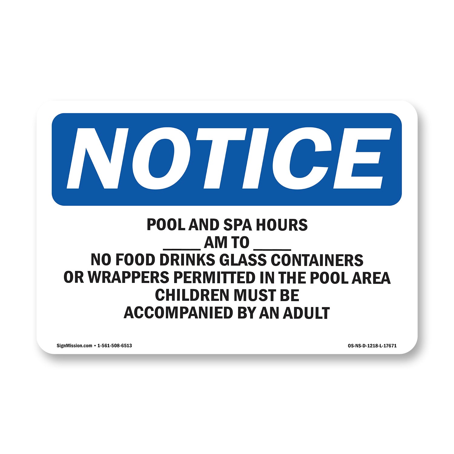 Pool & Spa Hours ____ Am To ____ Pm No Food