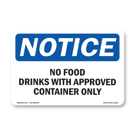 No Food Drinks With Approved Container Only