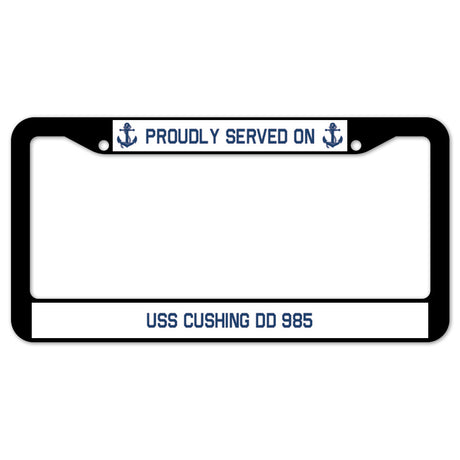 Proudly Served On USS CUSHING DD 985 License Plate Frame