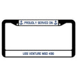 Proudly Served On USS VENTURE MSO 496 License Plate Frame