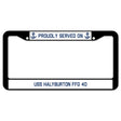 Proudly Served On USS HALYBURTON FFG 40 License Plate Frame