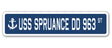 USS SPRUANCE DD 963 Street Sign