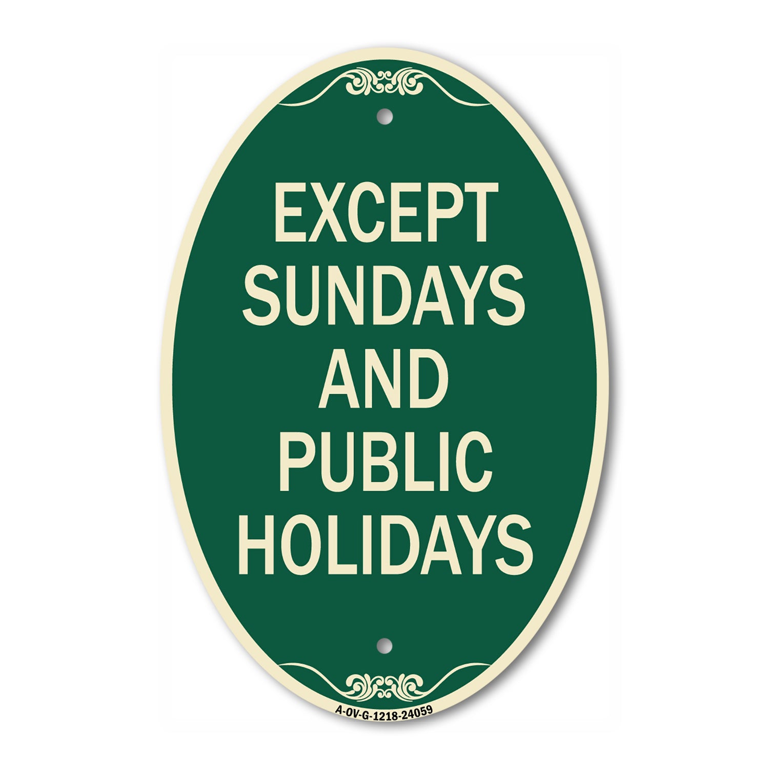 Except Sundays and Holidays Supplementary Sign