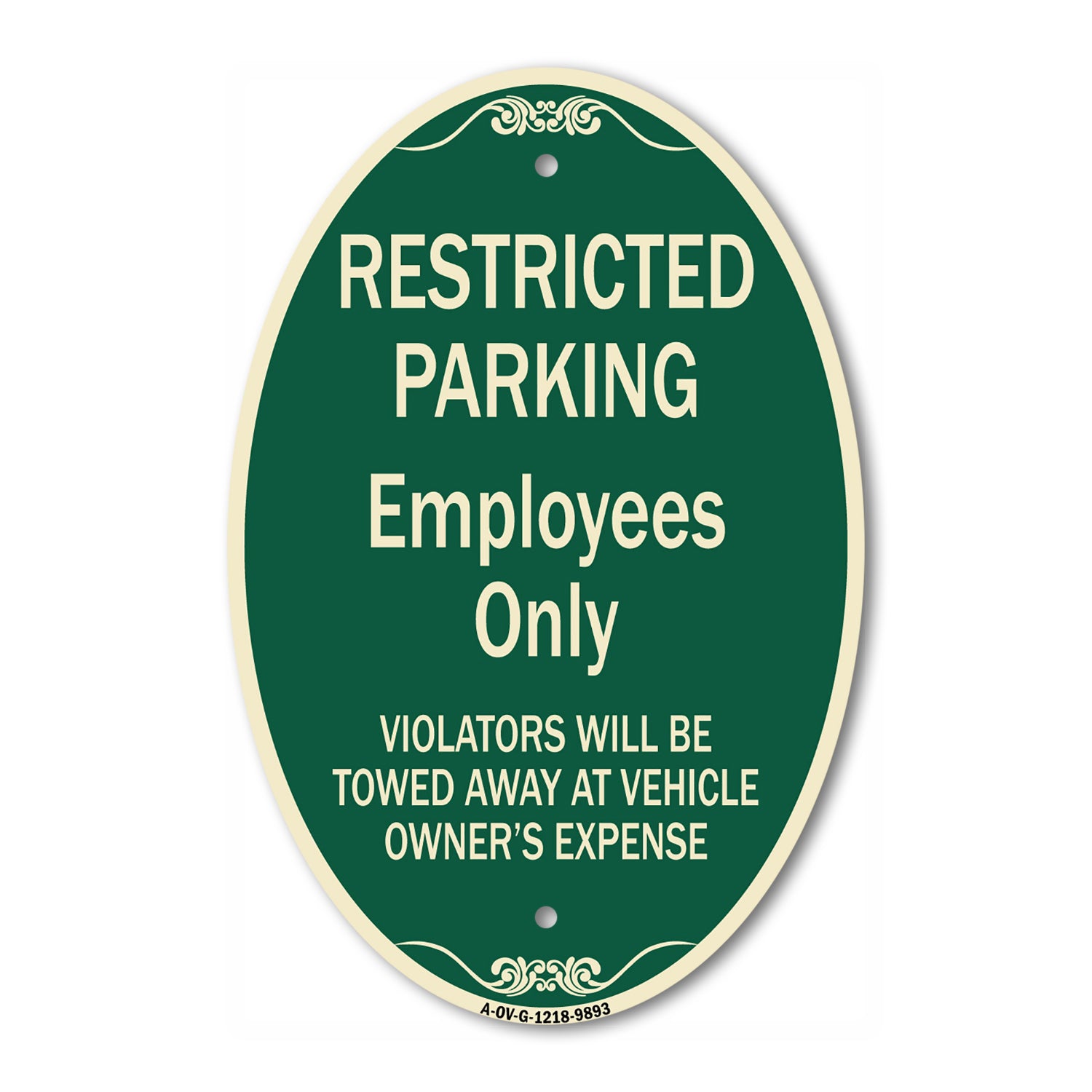 Restricted Parking Employees Only Violators Will Be Towed At Vehicle Owner's Expense - 12" X 18" Oval is backordered and will ship as soon as it is back in stock.