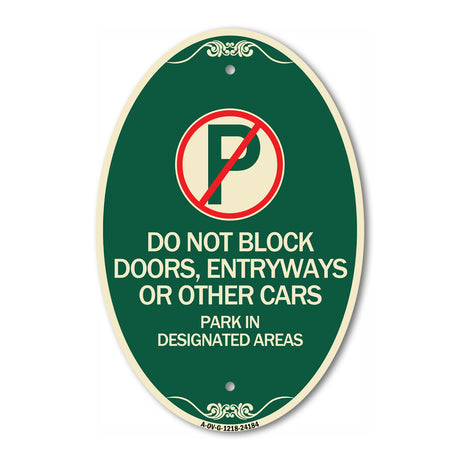 Do Not Block Doors Enter Ways or Other Cars Park in Designated Areas with No Parking Symbol