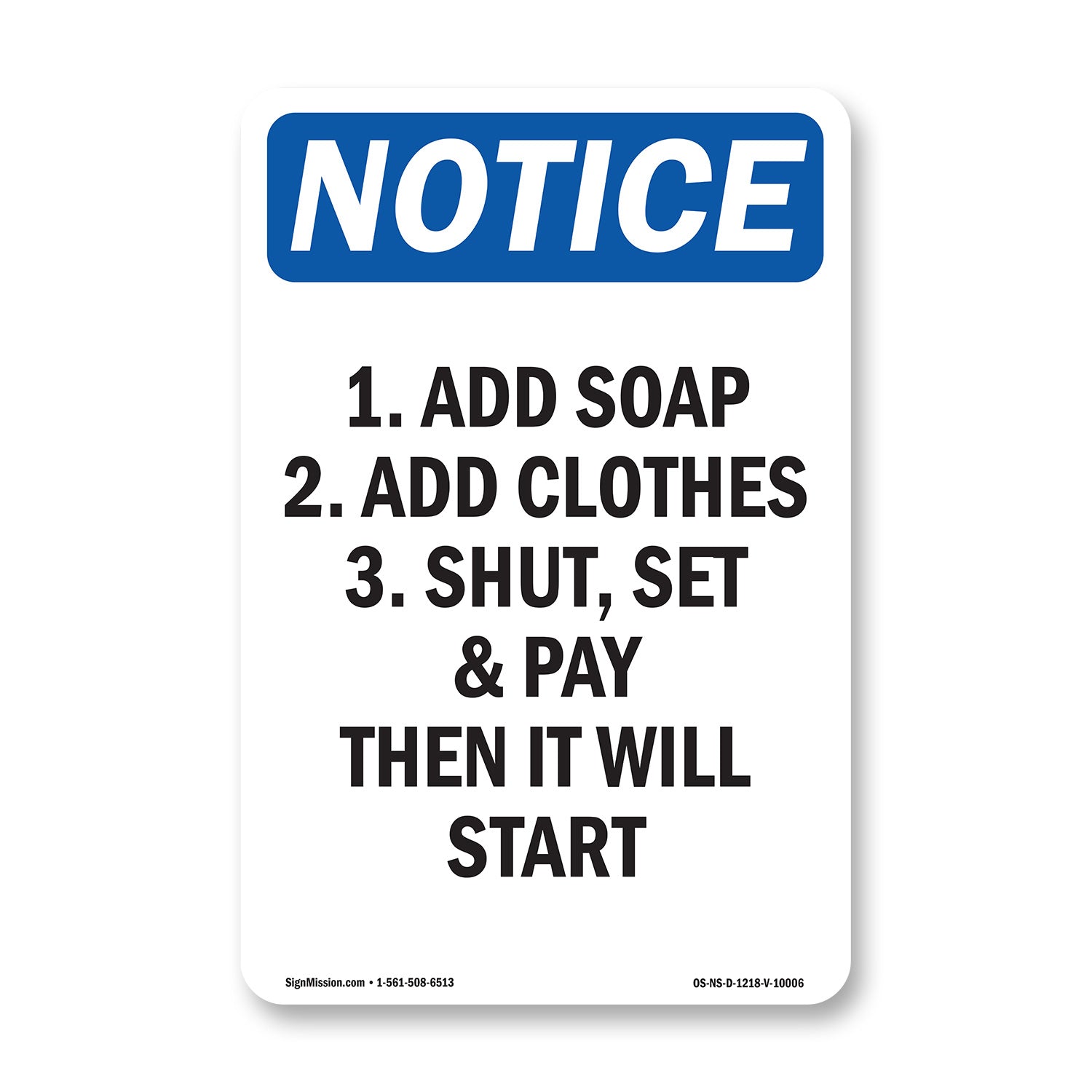 1. Add Soap 2. Add Clothes 3. Shut, Set