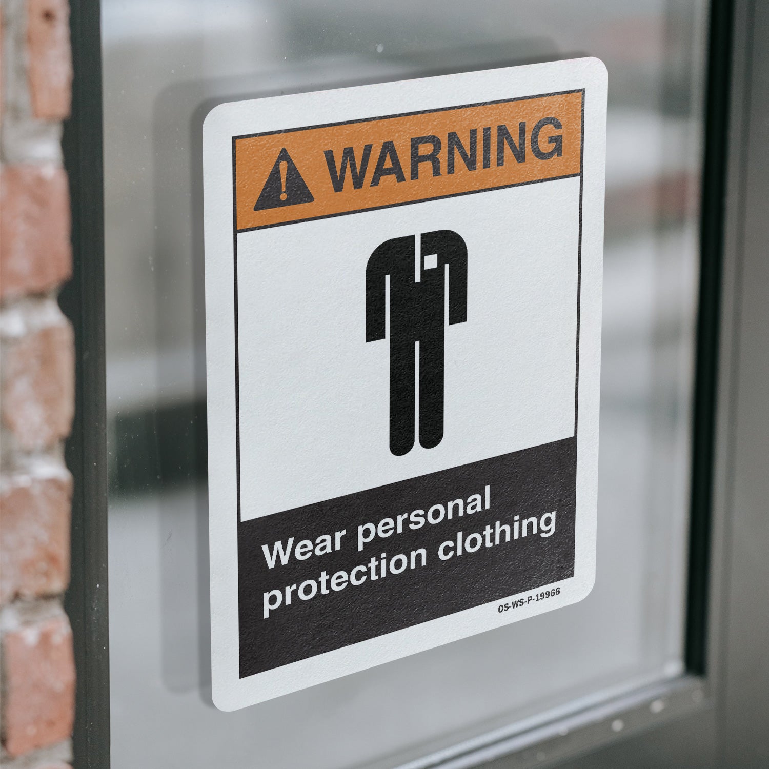 A working OSHA/ANSI safety sign that reads clean at distance and holds up outside. Header colors and signal words follow Z535 standards. High contrast. No glare.